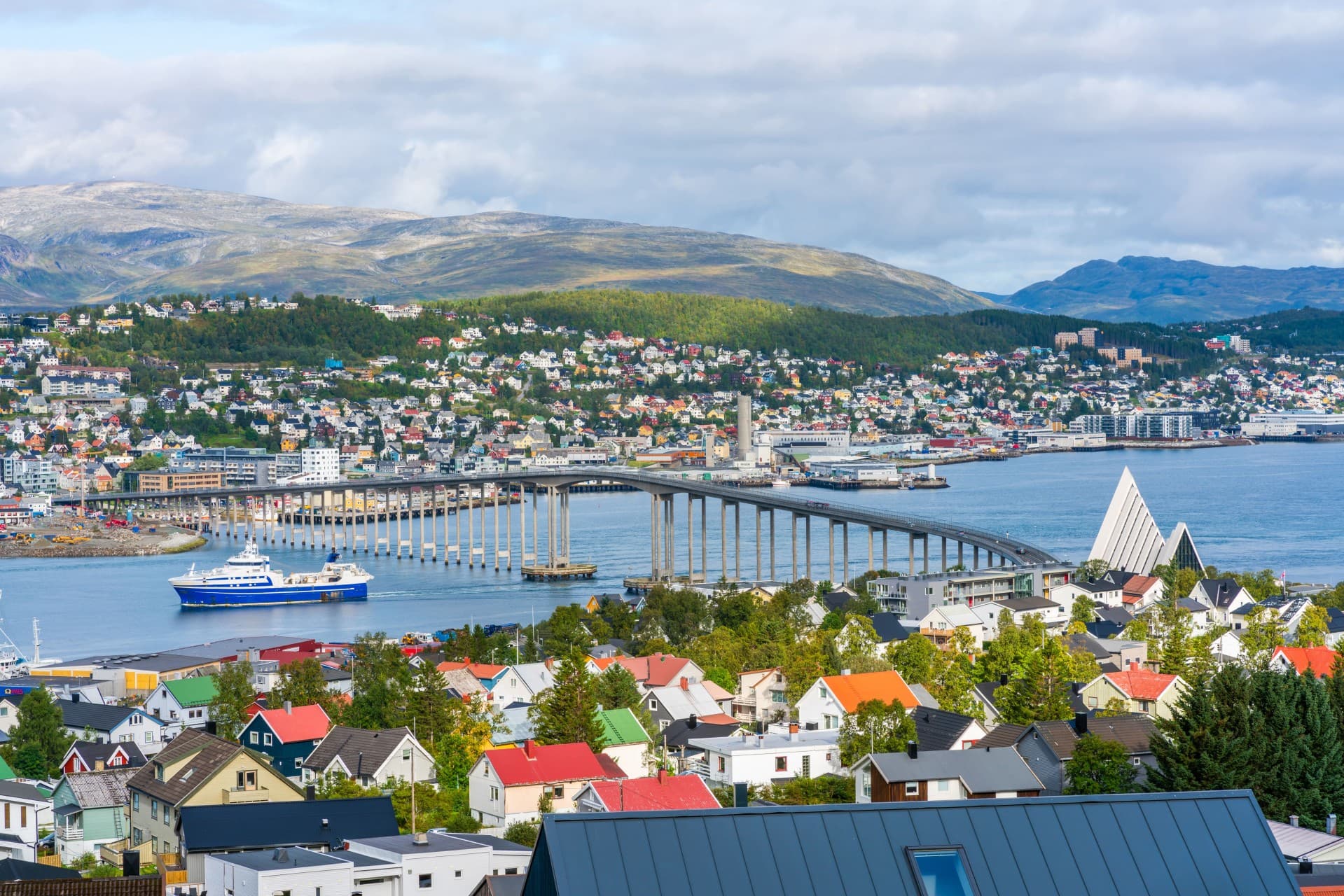 Tromsø Dopo la colazione, partenza da Andenes e imbarco sul traghetto per Gryllefjord. Proseguimento via terra verso Tromsø, considerata la capitale del Nord della Norvegia. Importante centro universitario e culturale, Tromsø è famosa anche per l’elevata possibilità di osservare l’aurora boreale nei mesi invernali. All’arrivo, giro panoramico della città con il tour leader, con sosta fotografica davanti alla celebre Cattedrale Artica (visita esterna). Pernottamento in hotel.